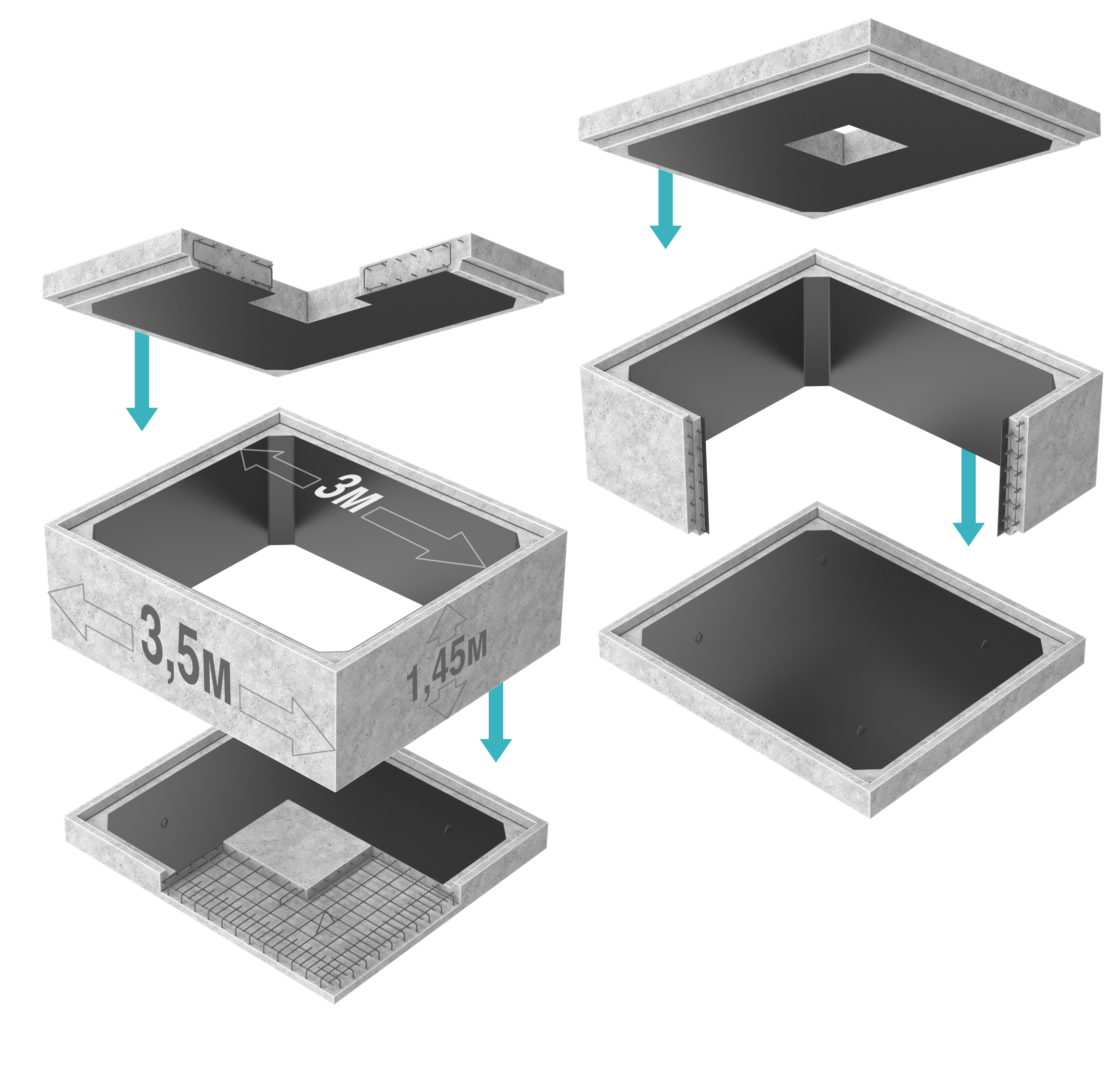 Главное преимущество: после монтажа сегментов на объекте стыки свариваются экструзионной сваркой. В результате получается бесшовная, химически стойкая и герметичная внутренняя оболочка, в то время как тяжелый железобетон обеспечивает устойчивость конструкции ко всплытию и деформациям.